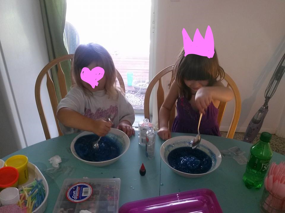 Step 8 –(So many damn steps) Pour this solution into the bowl and stir – this is when the cool stuff starts happening! The kids will watch in amazement as it turns into silly putty right before their little eyeballs.