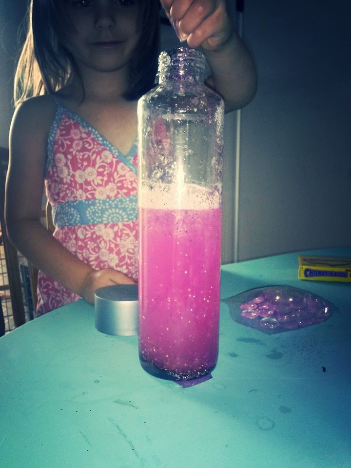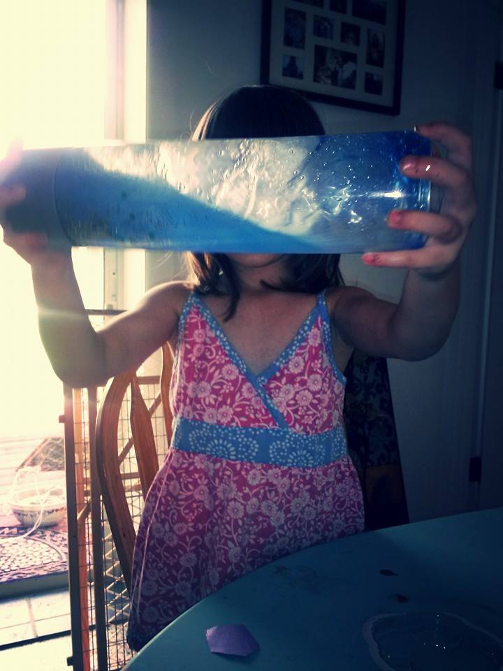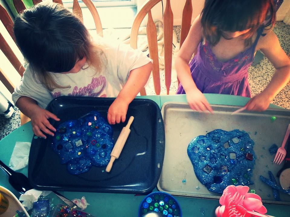 We took it a step further and grabbed some kitchen utensils and started putting jewels into it (See picture) We brought it out to the sun and it looked awesome. It’s a lot of work, but your kids will think you are a magician….Totally worth it.